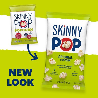 › SkinnyPop-Original-Popcorn-GlutenSkinnyPop Original Popcorn, 6.7oz Party Sized Bag, Skinny Pop ... Skinny Pop always starts with a premium popcorn kernel, sunflower oil and the perfect amount of salt. From there, pure popped perfection says it all. Our popcorn has no GMOs, gluten or preservatives, making skinny a tasty, guilt-free snack. That's the skinny! Product details Product Dimensions : 11 x 5 x 15.5 inches; 6.72 Ounces