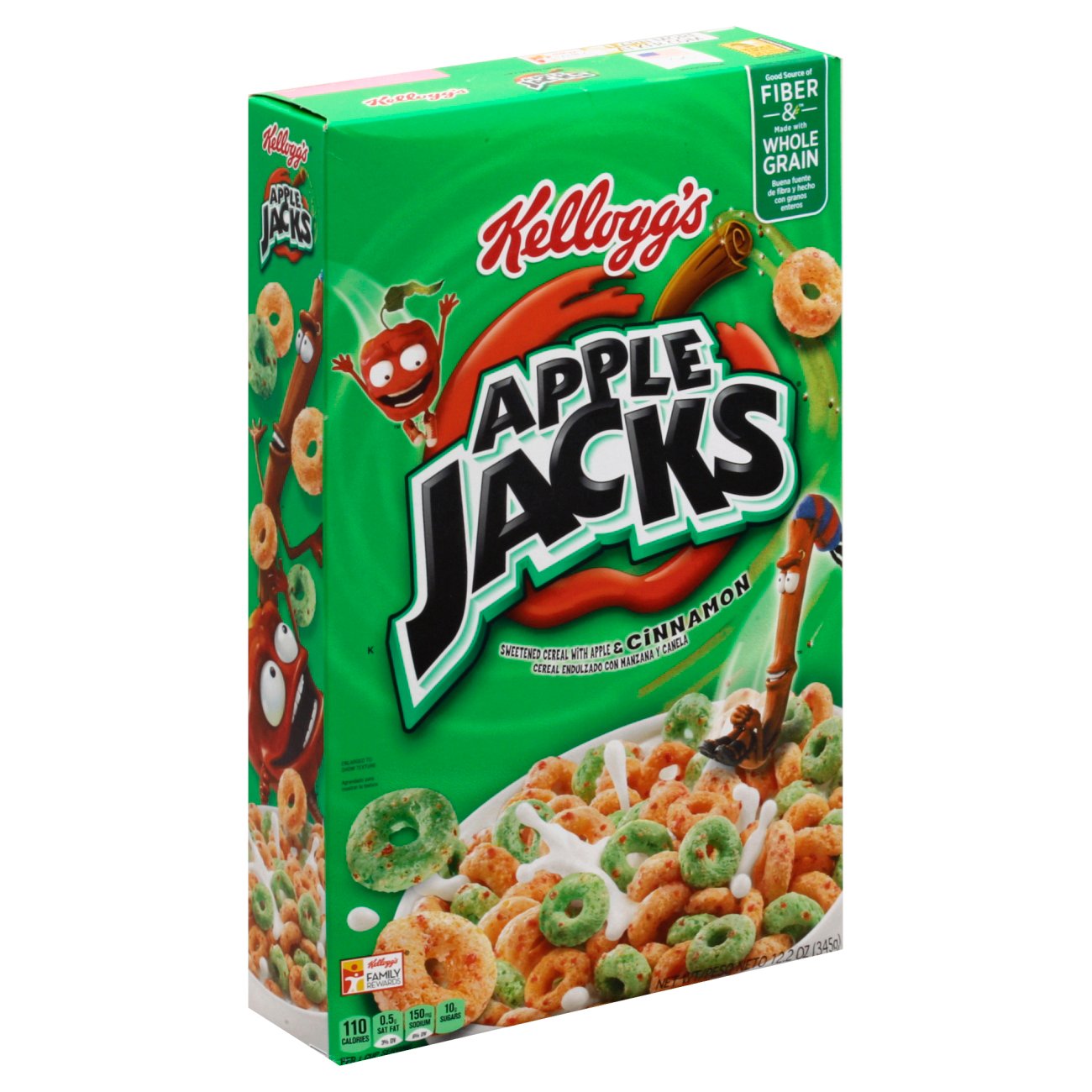 Kellogg's Apple Jacks cereal Kellogg's® Apple Jacks® Cereal 4.3 (272) Write a review About this item: Details Nutrition Facts & Ingredients Where To Buy Highlights Crunchy, sweetened three-grain cereal with apple and cinnamon. Kellogg's Family Rewards The brands you love are loving you back. LET'S DO THIS Featured Recipes Overnight Subway Slammer 485 MIN | 1 SERVING