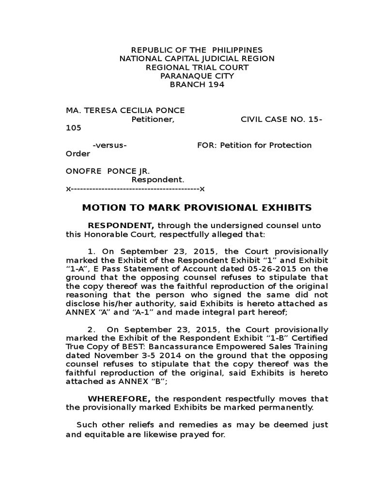 How to label exhibits for court. 3.1 - Delivery and Receipt | EOIR | Department of Justice 14/02/2022 · Deadlines for filings submitted while proceedings are pending before the Immigration Court (for example, applications, motions, responses to motions, briefs, pre-trial statements, exhibits, and witness lists) are as specified in subsections (1), (2), and (3), below, unless otherwise specified by the Immigration Judge. Deadlines for filings ... How Do I Choose and Prepare Exhibits? - YouTube How Do I Introduce Exhibits in Court? AlaskaCourtSystem ... Exhibits in the Courtroom - Prof. ... How to Present Your Case In Court. Exhibits: Numbered or Alphabetical | NY Law Firm Explains | The Law ... "Madam court reporter, please change the markings on Exhibits 1 & 2 from being marked for identification to being marked into evidence," the judge says with authority. Later, when the defense lawyer has an opportunity to introduce some exhibits, there's one important difference. What is the correct way to label EXHIBITS AND ASSEMBLE YOUR… There is no strict procedure for doing so. For years, I used to simply attach the exhibit to the declaration and simply put a tab at the bottom indicating "A," "B," or "C." Occasionally, I would give each exhibit a "cover page" identifying the exhibit.