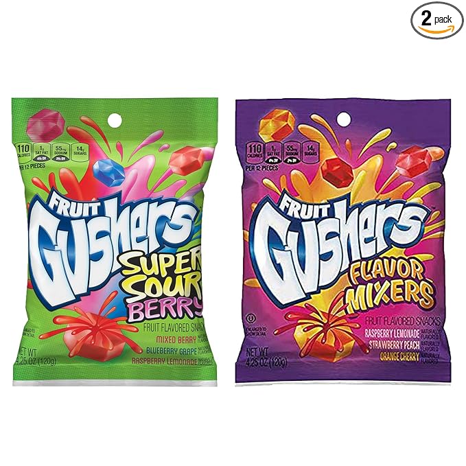 Fruit Gushers Specialty Flavors - Gluten Free Low Calorie Fruit Flavored Snacks, 4.25oz (Pack of 3) + Bonus Nostalgic Candy (Super Sour Berry)