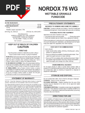 PDF Nordox 75 WG Label - Plant Food Company 34 NORDOX 75 WGcopper fungicide/bactericide provides more copper protection, with less prod- uct, at a great price! It is the only wettable granule fungicide/bactericide that contains 75% metallic copper - the highest percent of bio-active copper available today. The NORDOX 75 WG Advantage Superior Quality