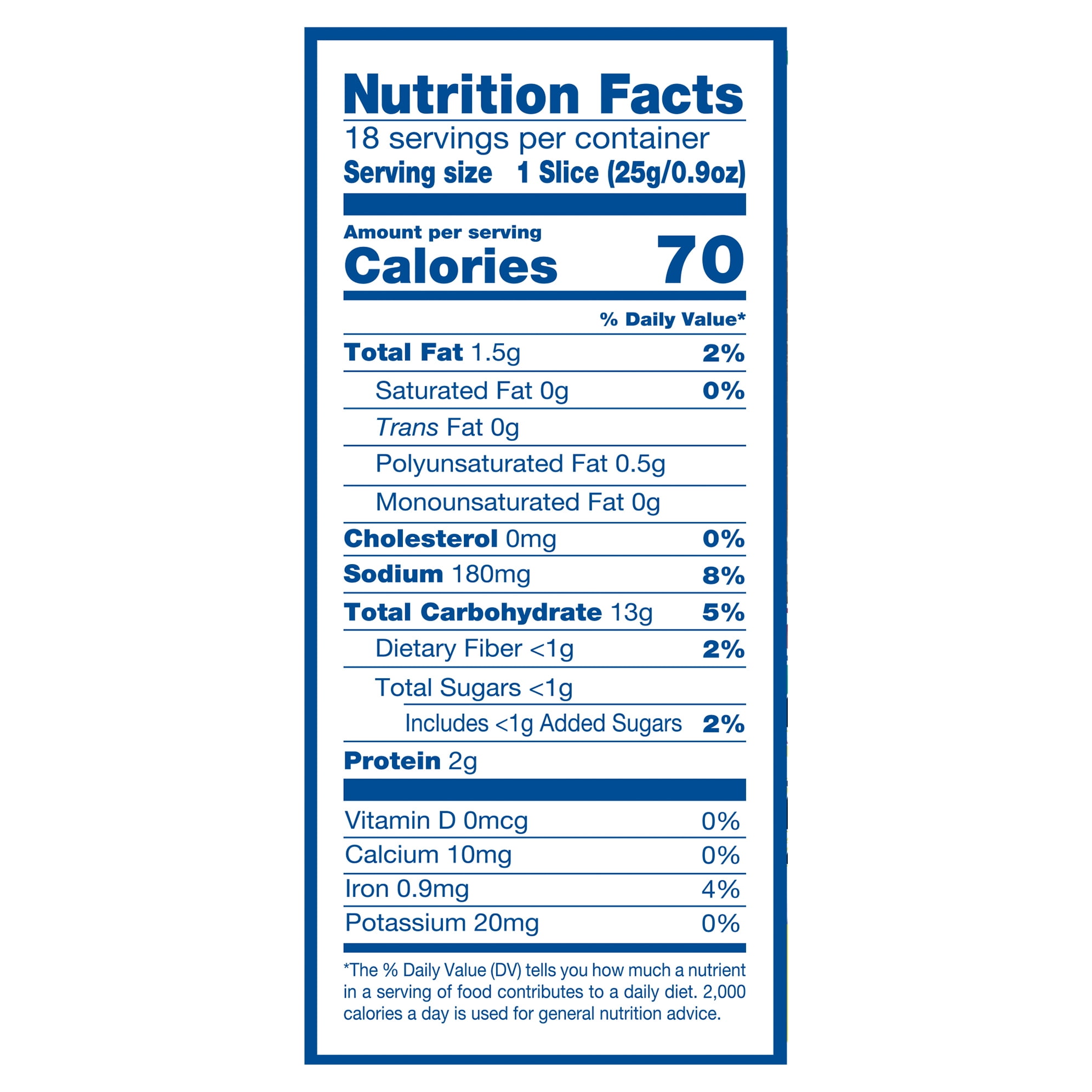 Calories in Wonder Classic White Sandwich Bread and ... - FatSecret Nutrition Facts Serving Size 1 slice (26 g) Amount Per Serving Calories 70 % Daily Values* Total Fat 0.50g 1% Saturated Fat 0.000g 0% Trans Fat 0.000g Polyunsaturated Fat 0.000g Monounsaturated Fat 0.000g Cholesterol 0mg 0% Sodium 100mg 4% Total Carbohydrate 13.00g 5% Dietary Fiber 0.0g 0% Sugars 2.00g Protein 2.00g Vitamin D - Calcium - Iron -