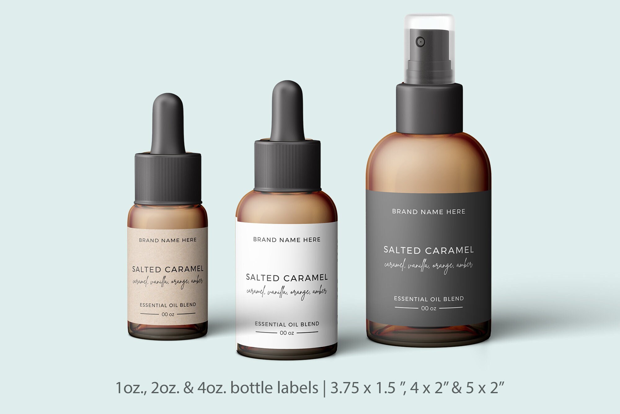 Bottle Labels for Essential Oils: What You Need to Know The same label size won't work for every container, but there's an easy trick to give you a good idea of the right label measurements for your essential oil bottles. Cut a rectangular piece of paper and wrap it around your bottle. If it's too big in either direction, trim it down until it fits, then measure your piece of paper.
