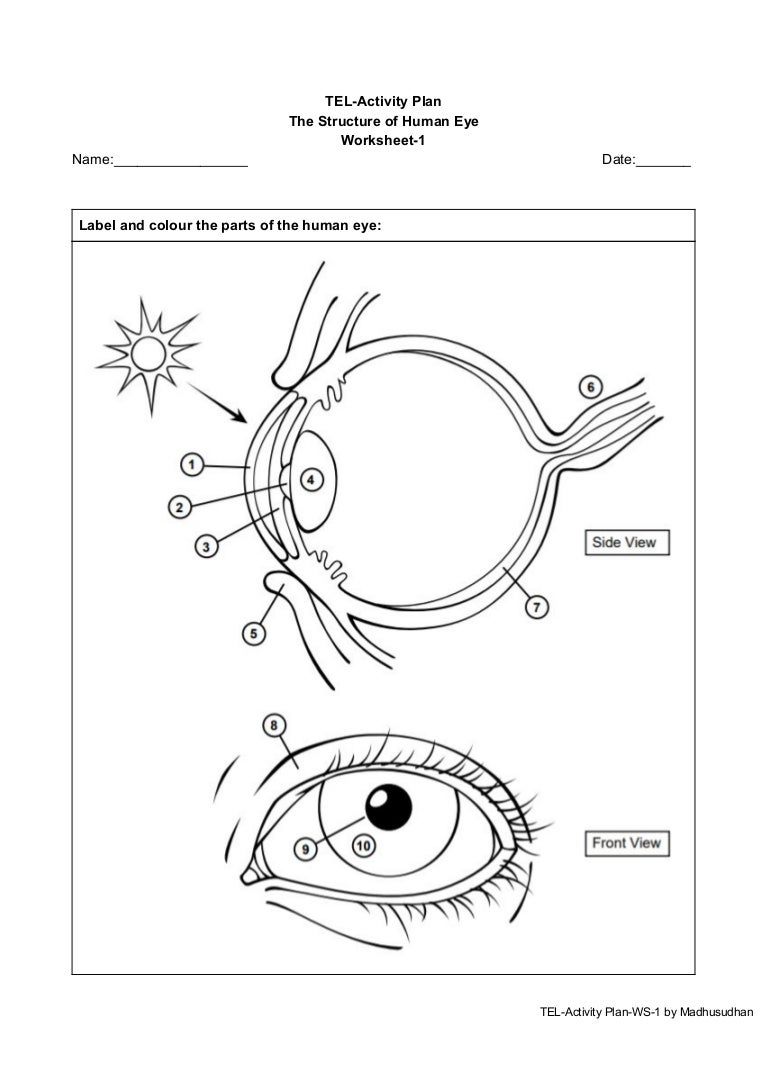 FREE! - Label the Eye Worksheet - Teacher-Made Learning Resources In this resource, you'll find a 2-page PDF that is easy to download, print out, and use immediately with your class. The first page is a labelling exercise with two diagrams of the human eye. One is a view from the outside, and the other is a more detailed cross-section. Challenge learners to label the parts of the eye diagram. On the second page, you'll find a set of answers showing ...