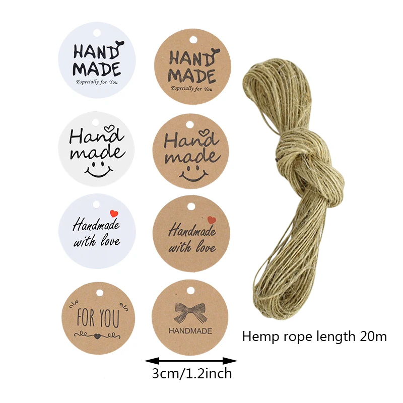 100PCS Round Handmade Especially for You Printed Tags,White Kraft Paper Gift Labels Handmade Kraft Paper Tags with 100 feet Jute Twine