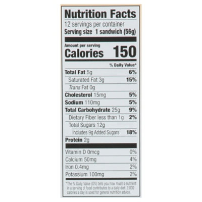 Ice cream sandwich nutrition label