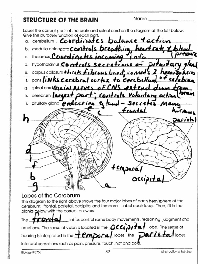 Human Brain Free Worksheet Downloads - Help My Kids Are Bored Help My Kids Are Bored. June 5, 2021. Printables. The human brain is a fascinating area of study for students of all ages. These unique three free printable human brain worksheets are available as PDF Downloads for your classroom, home school or any educational setting. PDF What's In Your Brain? - Arizona State University The parts of the brain have been labeled. Your challenge is to write the correct name for each part. ... What's In Your Brain? Activity Key 1. Cerebral cortex 2. Thalamus 3. Corpus callosum 4. ... Midbrain 8. Pons 9. Medulla 10. Brainstem 11. Spinal cord 12. Cerebellum. Title: Ask A Biologist - What's In Your Brain? - Worksheet Activity ...