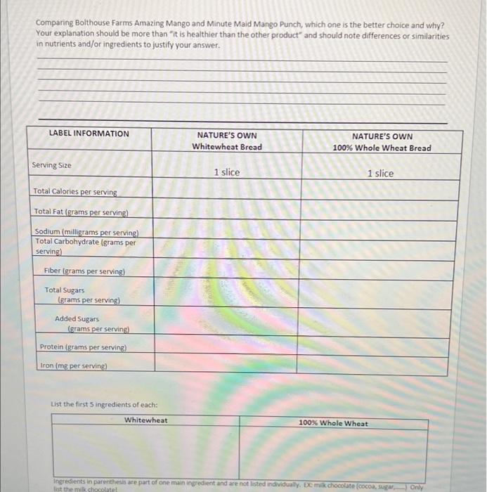 Nutrition label worksheet answers pdf