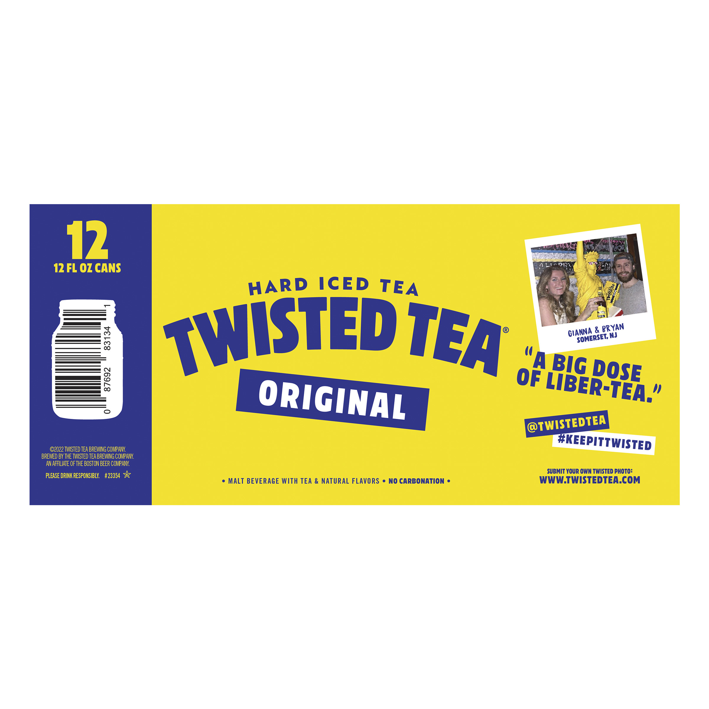 Food Nutrition Facts and Free Calorie Counter | CalorieKing Food Nutrition Facts and Free Calorie Counter | CalorieKing Twisted Tea, Original Nutrition Facts - Eat This Much Twisted Tea, Original Nutrition Facts - Eat This Much Twisted Tea, Original Twisted Tea Report a problem with this food Find on Amazon Percent calories from... Quick stats 194 Calories 25.9g Carbs (25.9g net carbs) 0g Fat 0g Protein No price info Try our free Diet Generator I want to eat calories in meals. I like to eat Generate Original | Styles | Twisted Tea Made from real brewed tea and natural lemon flavor, Twisted Tea Original is refreshing, smooth, and of course, a little twisted. Great for sharing with friends too, but if you want to keep this 12 pack for yourself, we don’t blame you. ABV: 5%. Packaging Options: 6 Pack 12oz Bottles. 12 Pack 12oz Bottles. 12 Pack 12oz Cans.