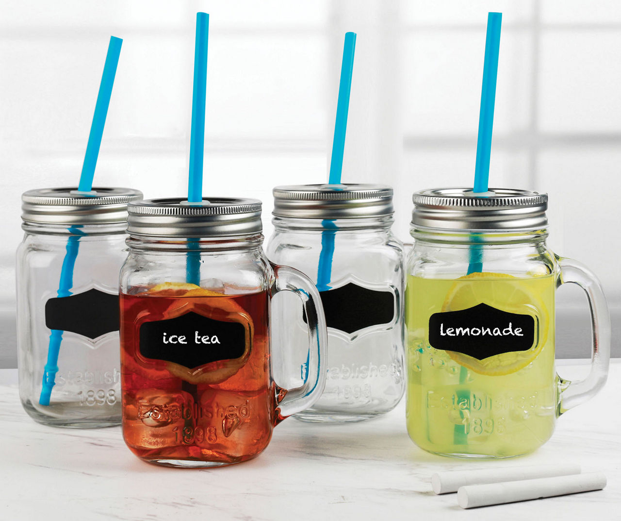 Glass Mason Drinking Jar 4-Pack With Chalkboard Label | Www ...