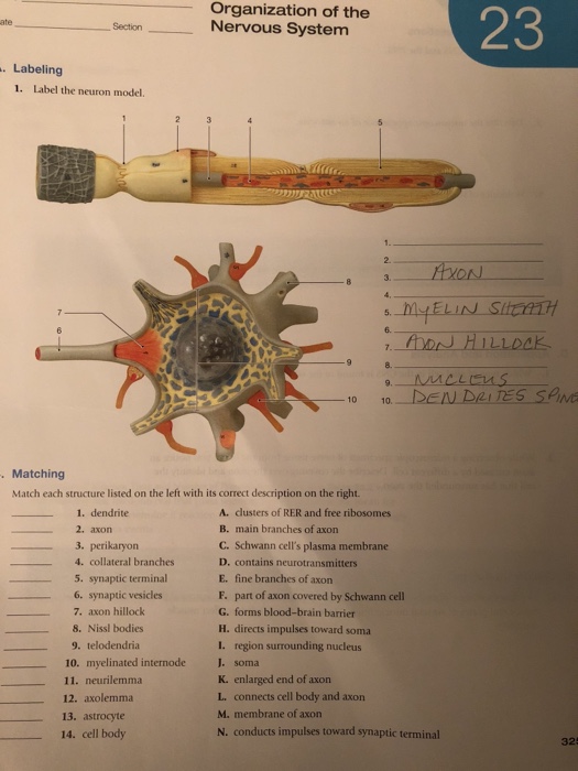 Label the neuron model. Neuron Models - San Diego Mesa College Neuron Models. Click on a photo for a larger view of the model. Click on Label for the labeled model. Back to Nervous System. Neuron. Cell Body & Dendrites. Axon. Label Parts of a Neuron Diagram | Quizlet Verified answer. physics. A car moves along an x axis through a distance of 900 m, starting at rest (at x = 0) and ending at rest (at x = 900 m). Through the first 1/4 of that distance, its acceleration is +2.25 m/s ^2 2. Through the rest of that distance, its acceleration is -0.750 m/s ^2 2. What is its maximum speed? The Neuron - Foundations of Neuroscience - Michigan State University Video Lecture. Neurons are the basic units of the brain. Their main function is to send electrical signals over short and long distances in the body, and they are electrically and chemically excitable. The function of the neuron is dependent on the structure of the neuron. The typical neuron consists of the dendrites, cell body, axon (including ... Solved 23 Nervous System . Labeling 1. Label the neuron - Chegg Labeling 1. Label the neuron model. 2. 3. 5. 6. 6 7. 8. 9. 10. 10 ure listed on the left with its correct description on the right. This problem has been solved! You'll get a detailed solution from a subject matter expert that helps you learn core concepts. See Answer Question: 23 Nervous System . Labeling 1. Label the neuron model. 2. 3. 5.