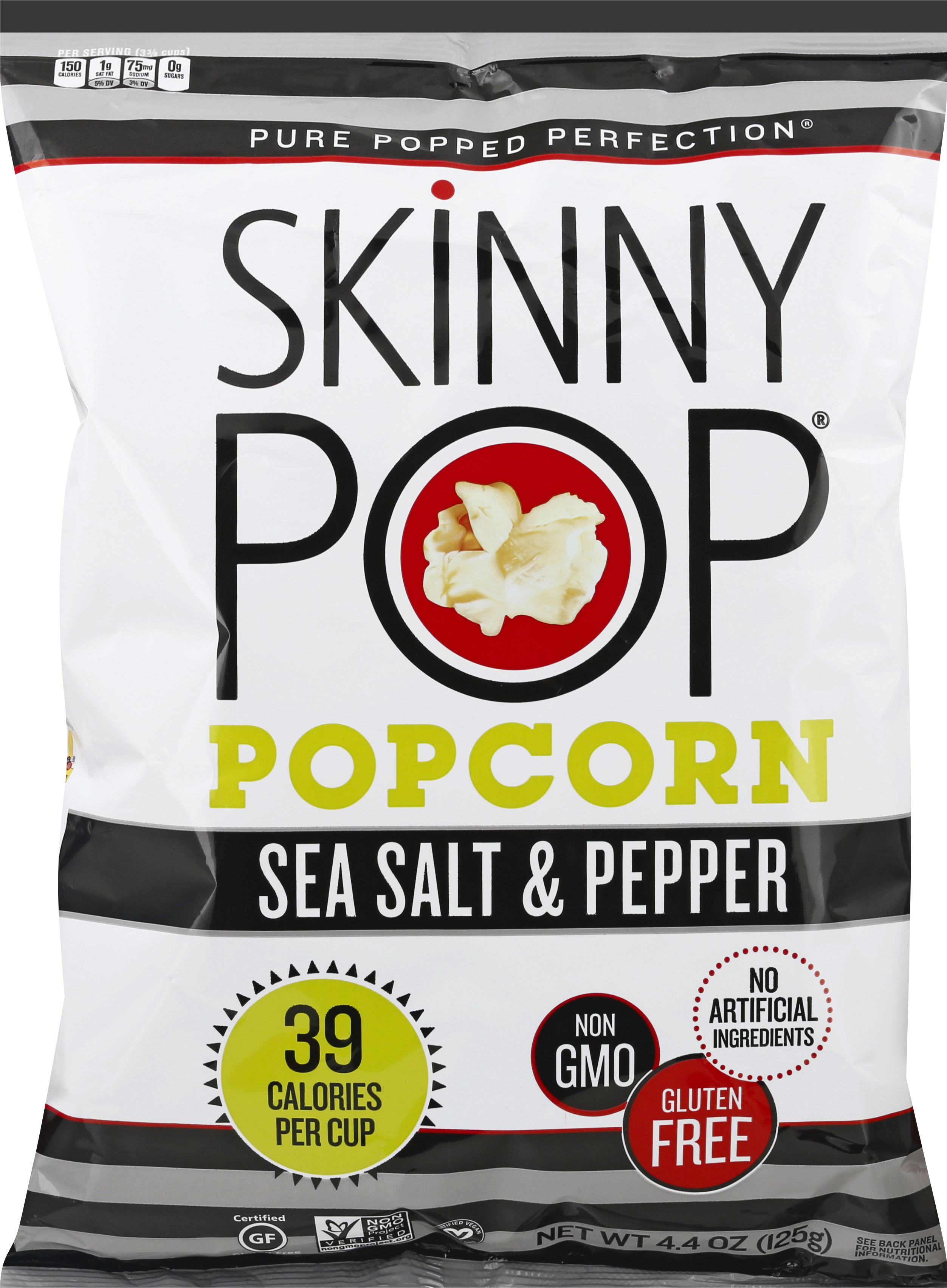 Skinny popcorn nutrition facts. Butter Microwave Popcorn - SkinnyPop Popcorn Now introducing the perfectly buttery, crunchy, fluffy SkinnyPop Popcorn served fresh and hot out of the microwave! NON GMO GLUTEN FREE DAIRY FREE PEANUT FREE TREE NUT FREE PRESERVATIVE FREE NO ARTIFICIAL FLAVORS AND DELICIOUS! Ingredients: Popcorn, Sunflower Oil, Palm Oil, Sea Salt, Natural Non-Dairy Butter Flavor, and Lactic Acid. ★★★★★ ★★★★★ 3.4 Original Popped Popcorn Popcorn - SkinnyPop Original Popped Popcorn Popcorn - SkinnyPop Original Popped Popcorn 3.8 (2917) Write a review Guilt-free snacking never tasted this delicious. NO ARTIFICIAL INGREDIENTS NON GMO GLUTEN FREE DAIRY FREE PEANUT FREE TREE NUT FREE PRESERVATIVE FREE NO ARTIFICIAL FLAVORS ZERO TRANS FAT A GOOD SOURCE OF FIBER AND DELICIOUS! Calories in Skinny Pop Popcorn, Sea Salt | CalorieKing There are 120 calories in 1 4.5 cups (1 oz) of Skinny Pop Popcorn, Sea Salt. You'd need to walk 33 minutes to burn 120 calories. Visit CalorieKing to see calorie count and nutrient data for all portion sizes. Nutrition Facts for SkinnyPop Original Popcorn • MyFoodDiary® Sodium 75mg. 5%. Total Carbohydrate 15g. 11%. Dietary Fiber 3g. Total Sugars 0g. 0%. Includes 0g Added Sugars. Protein 2g.